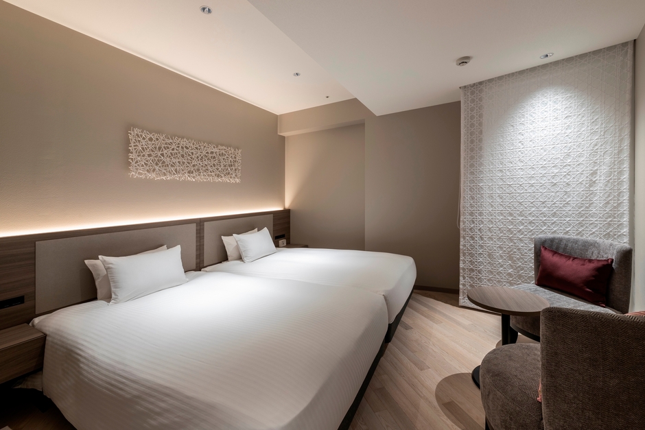 ダブル 161室、ツイン 111室、トリプル 32室からなり、部屋タイプによって、服のしわ・ニオイ・ダニや花粉を掛けておくだけですっきりとリフレッシュしてくれるホームクリーニング機「LGスタイラー」をはじめ、多機能シャワーパネルを備えたバス・トイレ独立型のバスルームや高機能ドライヤー、フットマッサージャー、衣類スチーマー等々を配備し、ビジネスでご利用のお客様にも観光で訪れるファミリーやグループのお客様にも、よりリラックス・リフレッシュしていただけるよう配慮いたしました。