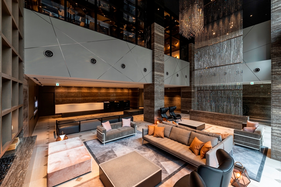 ロビーラウンジには数種類のイタリアカッシーナ社製ソファ・テーブルを配置。