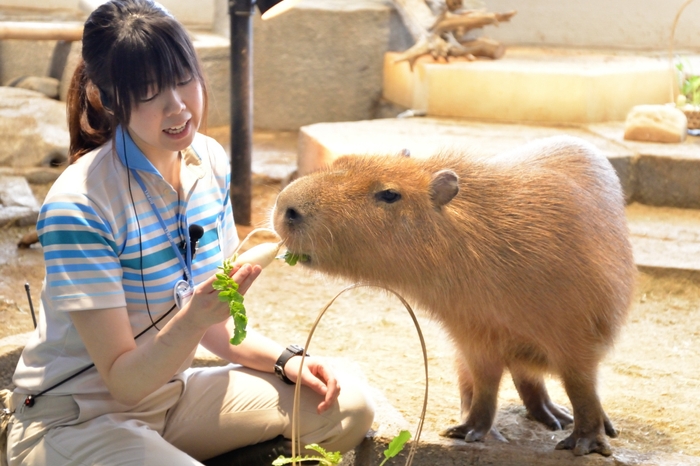 「春の七草エンリッチメント」では、「うごきにふれる」ゾーンで暮らすカピバラやワオキツネザルに、普段はおやつとして与えている野菜や果物の代わりに、春の七草(セリ、ナズナ、ゴギョウ、ハコベラ、ホトケグサ、スズナ、スズシロ)を与え、バリエーション豊かなエサの中から、自分で好きなものを選ぶ、引き抜く、千切るといった行動の多様性を引き出すと共に、生きものたちの長寿と健康に役立てます。また、その様子をキュレーターの解説とともにご覧いただきます。