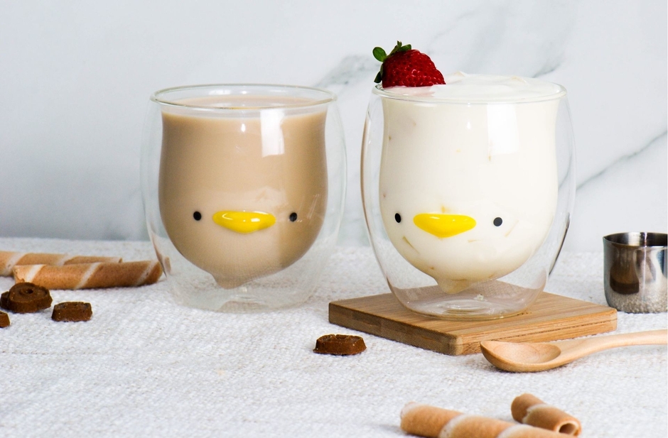 「GOODGLAS」のデザインダブルウォールグラスは飲み物を注ぐと、内面のデザインがくっきりと現れとても可愛い表情を見せます。