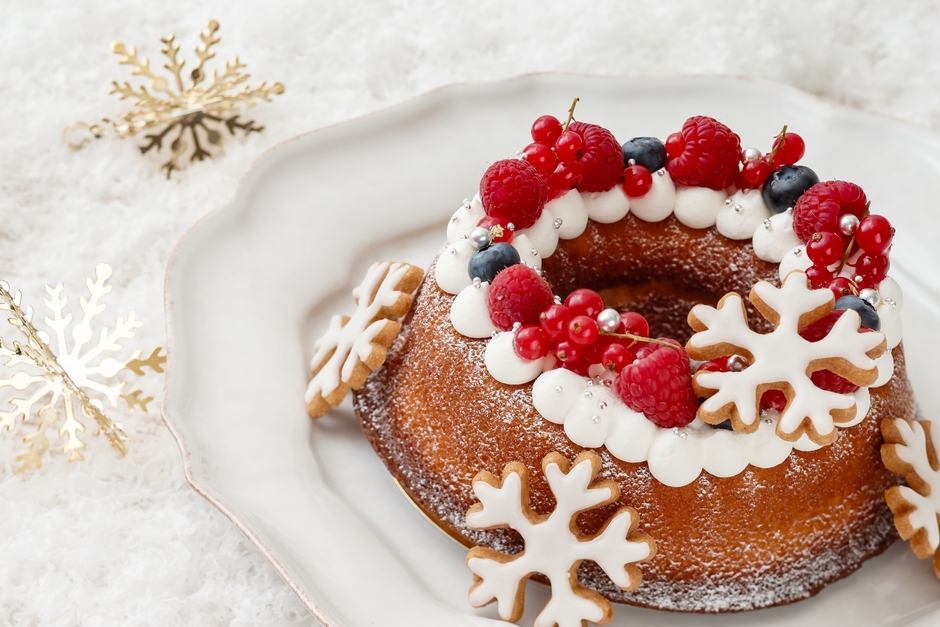 - ガトー・ショコラブラン(ベリーや雪の結晶を模ったアイシングクッキーでデコレーションしたホワイトチョコレートのガトーショコラ)