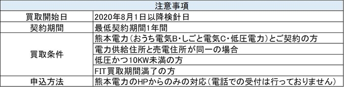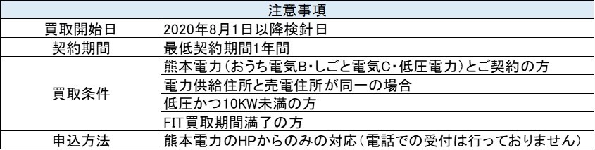 尚、本サービスは固定価格買取制度による買取期間が満了されたお客様で熊本電力にご加入の方限定のプランとなります。本サービスには離島は含まれておりませんので、予めご了承ください。