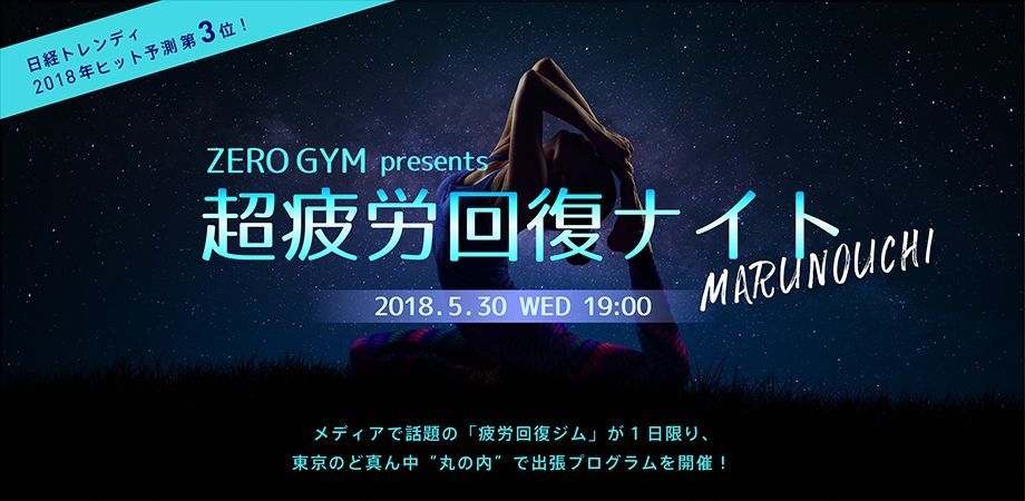 ビジネスパーソンのための疲労回復専用ジム『ZERO GYM』が 2018年5月30日(水)丸の内で『超疲労回復ナイト』イベント開催!