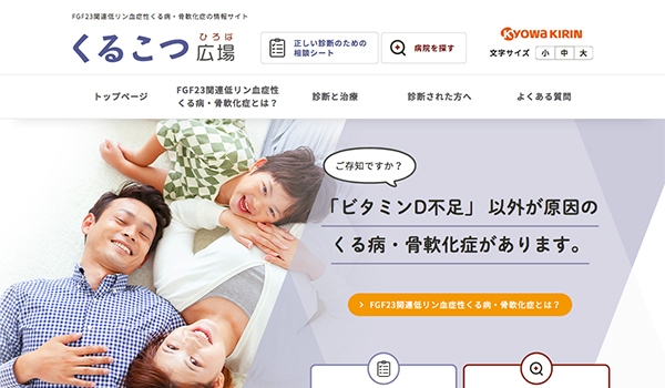 協和キリン株式会社(本社:東京都千代田区、代表取締役社長:宮本 昌志、以下「協和キリン」)は希少疾患である、FGF23関連低リン血症性くる病・骨軟化症※に関する情報を提供する自社Webサイト「くるこつ広場」を開設しましたので、お知らせします。