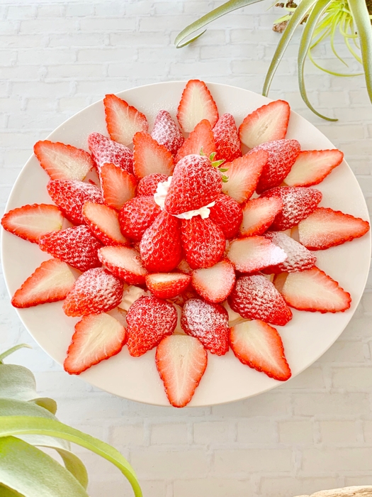いちごまるごとかき氷に朝採りいちご1パック分を贅沢にトッピング!「完熟いちごのプレートかき氷」
