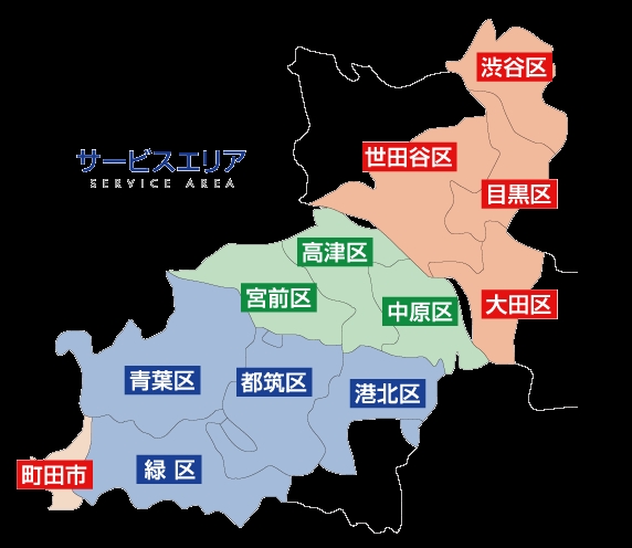神奈川県:横浜市 (青葉区、港北区、都筑区、緑区)川崎市 (宮前区、高津区、中原区)