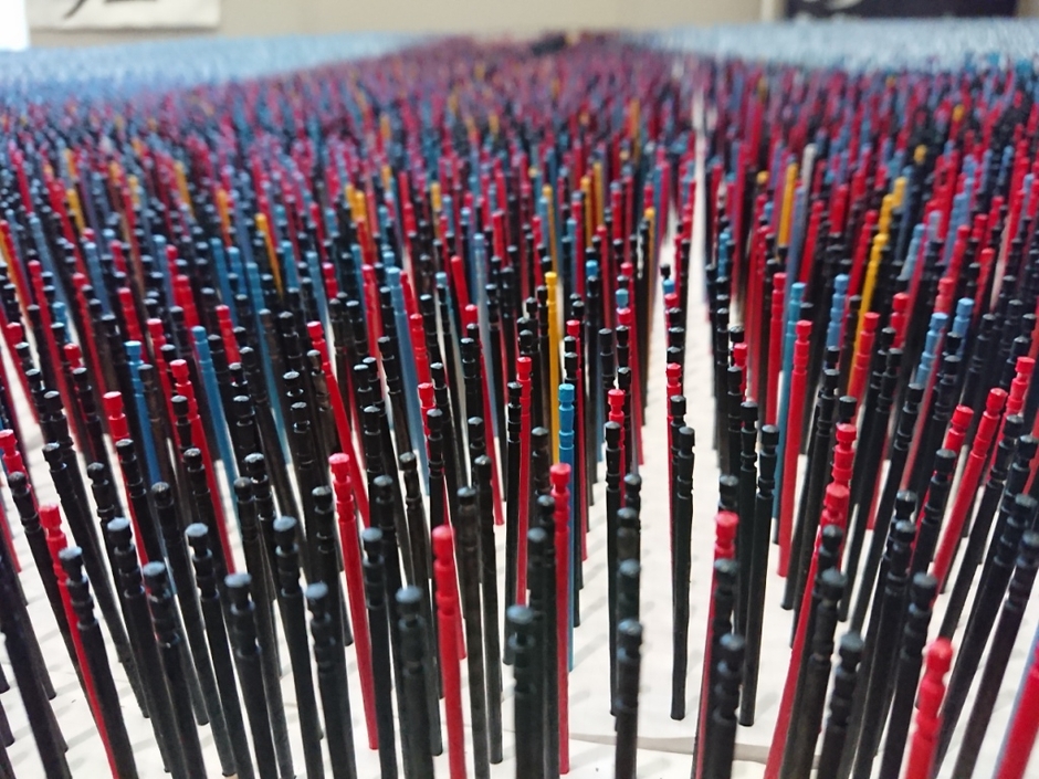 つまようじ44,720本を使った「つまようじアート」。中学生が広島県福山市の景勝地「鞆の浦」を描く!