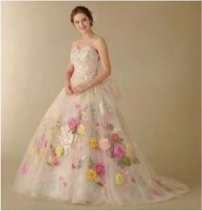 今回の新作は昨シーズンより引き続き人気の高い3Dフラワーに加え、贅沢な刺繍や絵画のようなプリントを施し、多彩な装飾で花々を表現したドレスをウエディングドレス・カラードレスともにラインナップいたしました。300枚もの花びらをスカート一面に広げた華やかでスイートなドレスもございます。