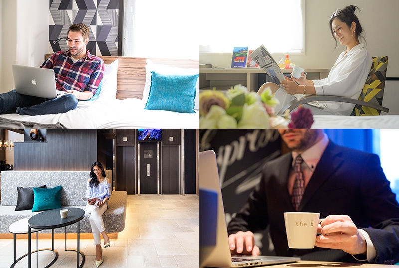 「the b」は、日本全国主要都市の交通利便性に優れたエリアに立地し、全18ホテルがターミナル駅から徒歩圏内にあるため、通勤時間の短縮や快適な出張生活をサポートいたします。