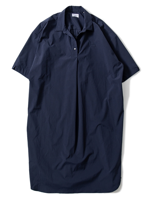 ワンピースはコンフォートロングシャツ型にし、ブランド・店舗イメージに合わせた柔らかさをシルエットで表現しながらも、すっきりと品のある女性像をイメージしてネイビーのタイプライター素材で製作しました。