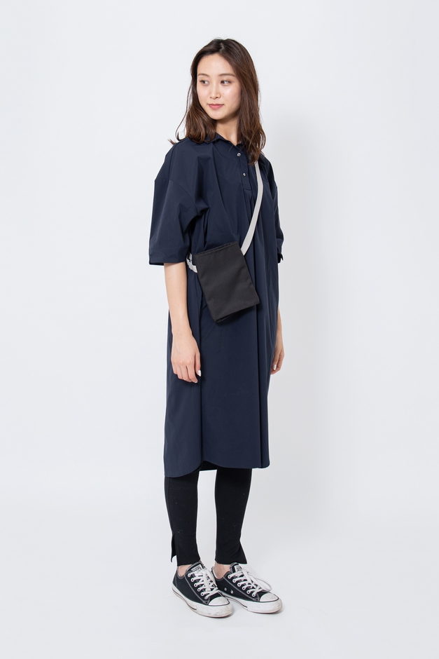 日々、各種作業のあるコスメ・ファッション雑貨店での着用なため、シルエットを崩さないポケットの仕様や袖周り・肩周りなど、ユニフォームとしての機能性をしっかりと持ちつつ普通のワンピースであるかのようなオシャレ感を作り出しています。
