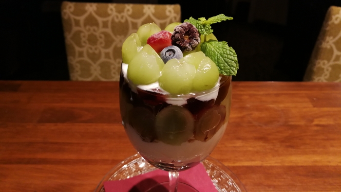 旬のマスカットとワイルドチェリーのパフェとクレープ