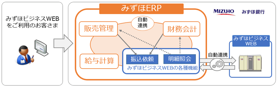 これにより、みずほ銀行の「インターネットバンキング(以下 IB)」と「クラウドERP『SmileWorks』」の連携が実現し、みずほ銀行は法人向けインターネットバンキングとERPを連動させた『みずほERP』の提供を2020年夏頃より開始します。