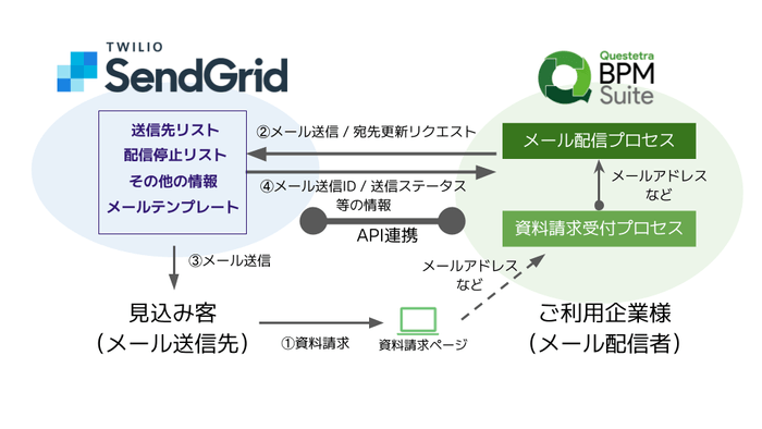 SaaSベンダーの株式会社クエステトラ(京都市、代表執行役CEO:今村 元一)は8月14日、ノーコード開発プラットフォーム『Questetra BPM Suite』の新バージョン15.1を公開しました。新バージョン15.1では、クラウド型メール配信サービス「Twilio SendGrid」と連携できるようになり、ワークフローから大量メール配信の制御が可能となります。