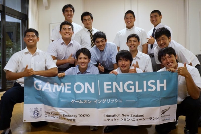 日本とニュージーランドはスポーツ分野での二国間協力を締結しました。これまで友好だった2カ国の関係をスポーツ分野でさらに関係を促進するものです。ラグビーW杯に向けた活動が加速化していく中で、ラグビーW杯開催国の先輩としてニュージーランドのノウハウを教授いただきたい。「Game on English」を通じて得たラグビーの経験と異文化体験を活かして羽ばたかれることを期待しております。