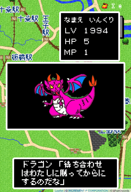 ◆URLをクリックすると、RPG風マップにドラゴン(待ち合わせ場所)が出現!