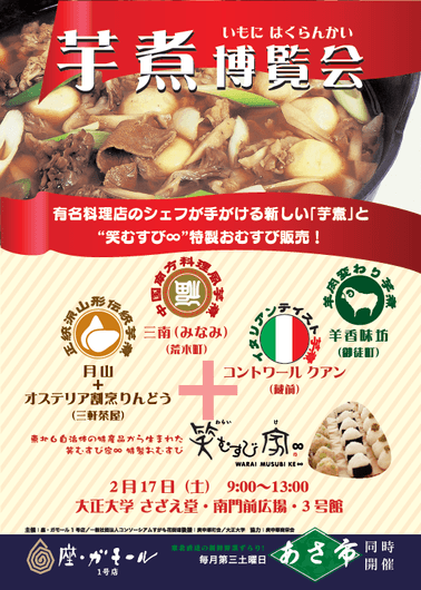 大正大学のあさ市で人気店のシェフが作る「芋煮博覧会」開催 ― 2018年2月17日(土)9:00~13:00 ―