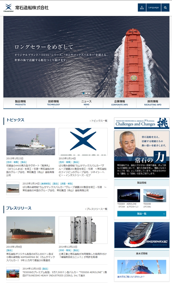 株式会社パンセ(本社:東京都千代田区、代表取締役社長 増田 彰)は、常石造船株式会社のコーポレートサイトフルリニューアルに際して企画、開発、制作を担当いたしました。