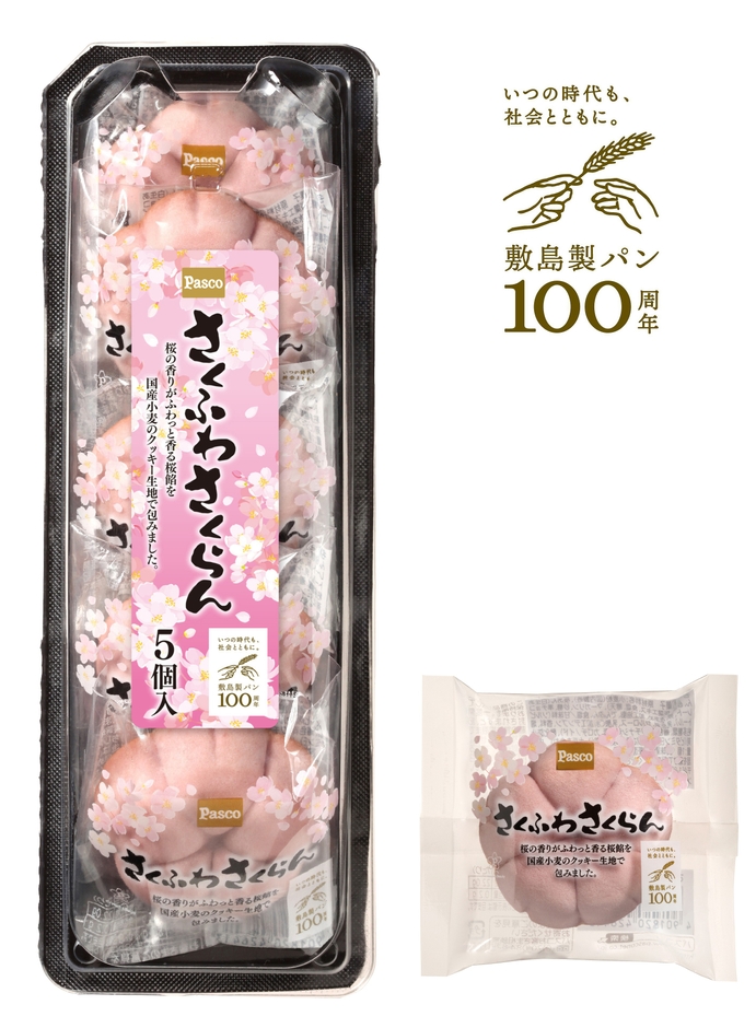 敷島製パン株式会社(Pasco)は、2020年6月に創業100周年を迎えるのを記念し、社員からのアイディア募集から生まれた記念商品「さくふわさくらん」「リスのしっぽ」の2アイテムを2020年2月1日より、関東、中部、関西、中国、四国地区にて発売します。