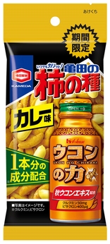 「ウコンの力」の初コラボレーション商品! 「ウコンの力」1本分の成分を配合した 『亀田の柿の種 カレー味』期間限定発売!