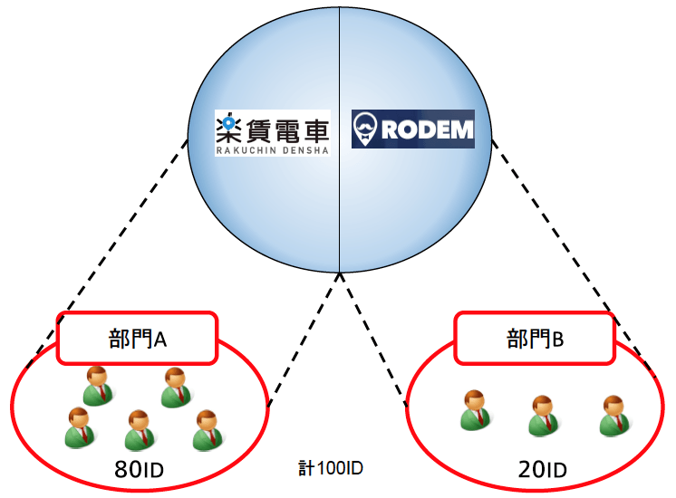 10IDごとに、RODEMを利用するか楽賃電車を利用するか選択することが可能です(初期設定時にそれぞれのサービスのID数を振り分けることができます)。
