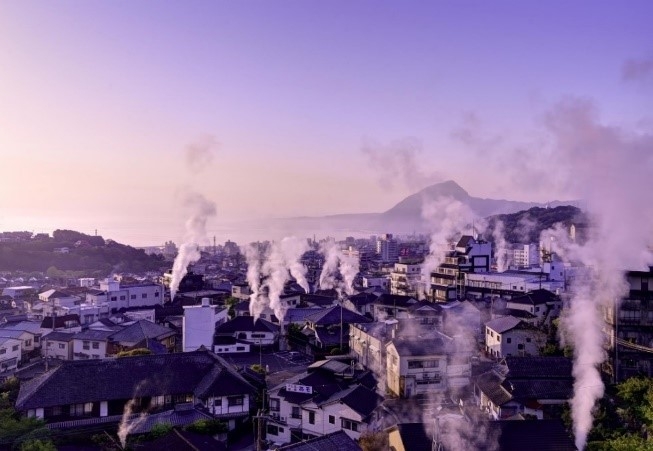 湯けむり立つ鉄輪温泉の街並み ■温泉地のサテライトオフィスa side-満寿屋-