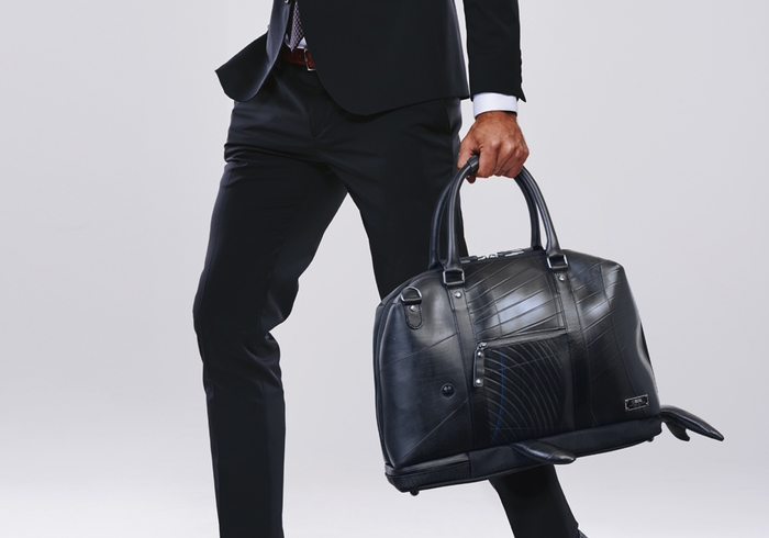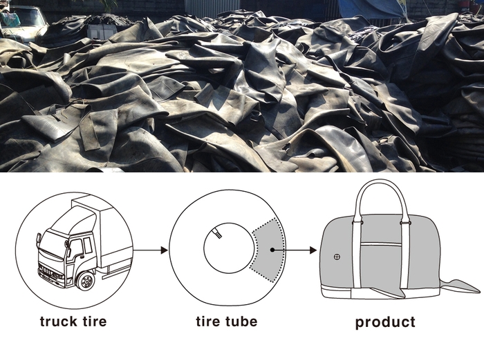 タイヤチューブの曲線や質感を活かし、国内職人の熟練した手作業により実現したアート作品のような、愛らしくもしっかりと表現された遊び心溢れるビジネスバッグが完成しました。ビジネスバッグとしての機能性や収納面も優れ、尾尻や背びれが付いているなど細部までこだわりをもってつくられた製品です。廃材の持つ防水性・耐久性により突然の雨などの過酷な環境でもしっかりと内部を守り、ありきたりなビジネスバッグではなく他の人とは違うビジネスバッグを持ちたい方、またはデイリーユースでもノートPCやモバイル機器を持ち歩く事の多い方でもしっかりと活躍するアイテムです。