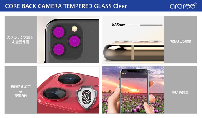 モバイル周辺アクセサリー専門の株式会社ロア・インターナショナル(所在地:東京都新宿区、代表取締役社長:Ally Won)は、araree(アラリー)から、iPhone 11 Pro / 11 Pro Max / 11の突出したカメラレンズ部分を全面保護するガラスフィルム「CORE BACK CAMERA TEMPERED GLASS Clear(コアバックカメラ テンパードグラス クリア)」を発売しました。