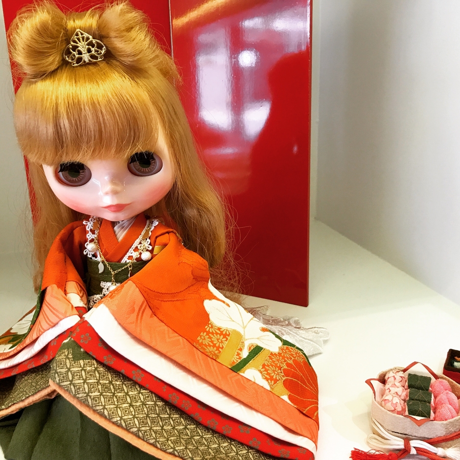 お雛様にちなんで、着物を着たブライスドールがKIMONO MODERNに勢揃い。