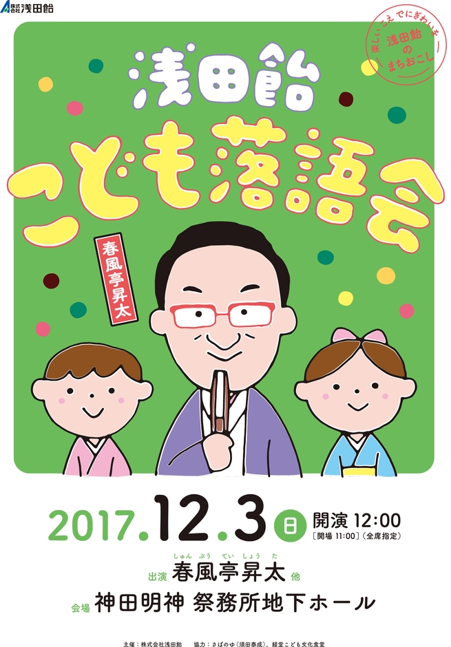 株式会社浅田飴(所在地:東京都千代田区、代表取締役社長:堀内 邦彦)は、創業130周年を記念し、浅田飴創業の地として本社を構える東京都千代田区神田に鎮座する「神田明神」にて、12月3日に「浅田飴こども落語会」を開催いたします。