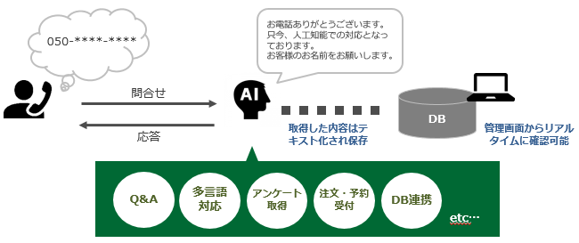 (1)人間に代わって人工知能が電話応対をするので、人件費を削減できます。