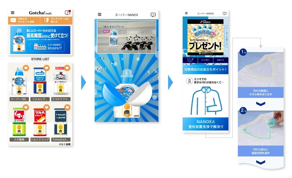 ライオン株式会社の「トップ スーパーNANOX(洗濯洗剤)」が「Gotcha!mall」を活用した新たなマーケティングを開始いたしました。楽しみながら商品の特徴や付加価値を知り、個々のユーザーに合った特典が購買のきっかけになります。「トップ スーパーNANOX(洗濯洗剤)」販売数量の拡大と共にロイヤルカスタマー育成を目指し、段階的に他ブランドも展開していく計画です。