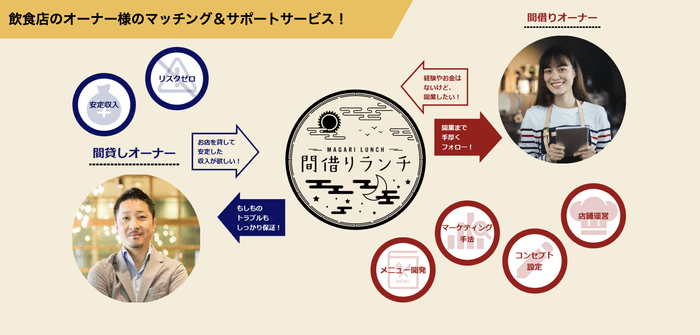 夜のみ営業している居酒屋やバーなど、立地はいいけどお昼の時間帯は営業していない店舗や人材不足でランチ営業ができない店舗など、一定の時間帯使用していない店舗を貸すだけで“毎月安定した現金収入”が入ってきます。