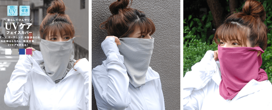 冷感フェイスガード(商品名「濡らしてひんやりUVケアネックカバー」)の特徴