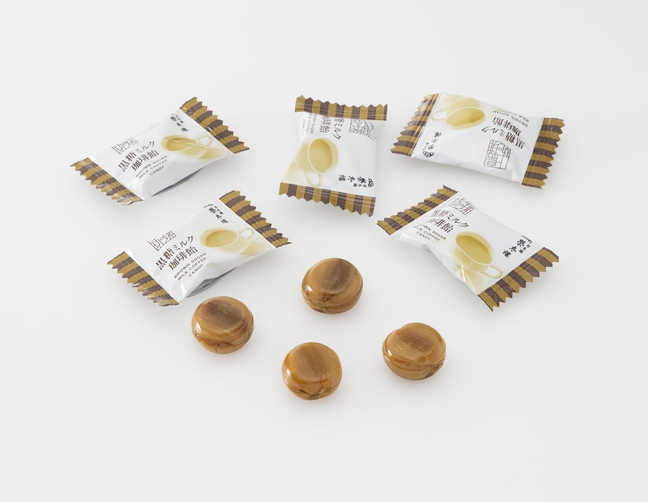 両社のこだわったそれぞれの味をミックスし、上島珈琲店で一番人気の「黒糖ミルク珈琲」の飴を再現いたしました。
