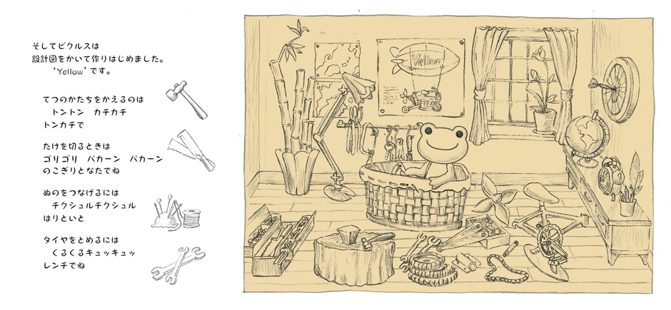 25周年を迎えるキャラクター「かえるのピクルス」とのコラボで、物語には「かえるのピクルス」が飛行船を作る様子や、ものづくりの妖精が登場します。
