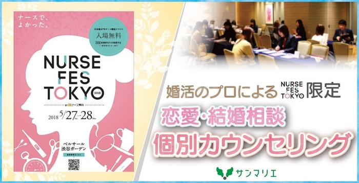 創業37年を迎えた結婚相談所サンマリエが、毎日忙しく働くナースを応援したい!と、「NURSE FES TOKYO 2018」にて個別カウンセリングを開催することになりました。