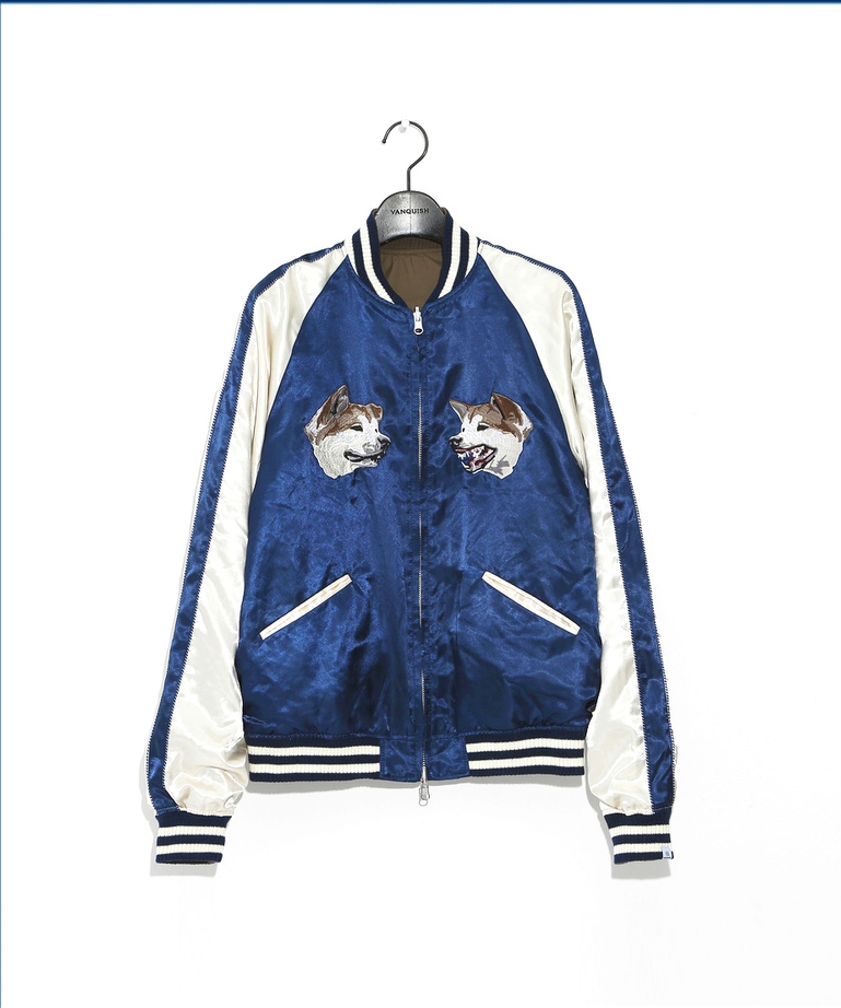 フロントにはVANQUISHのスカジャンで定番となったハチ公の刺繍、バックには「NEW WORLD」の文字と、ユニコーンペガサス、空、太陽、車と内田雄馬さんを象徴するようなモチーフで構成されたオリジナルスカジャンとなっております。
