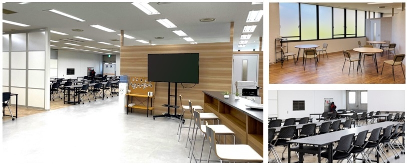 各330 平方メートルの広々したフロアは、教室とホールが一体となったオープンな造りが特長で、友達同士や先生とコミュニケーションが取りやすく過ごしやすい空間です。eスポーツ専用設備があるほか、中学生を対象としたeスポーツとプログラミング教室の「ルネ中等部」も開講しています。