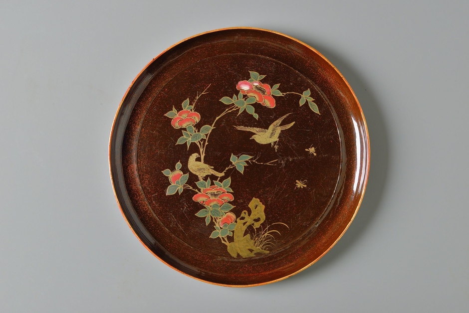 黒漆花鳥密陀絵箔絵盆(くろうるしかちょうみつだえはくえぼん)
