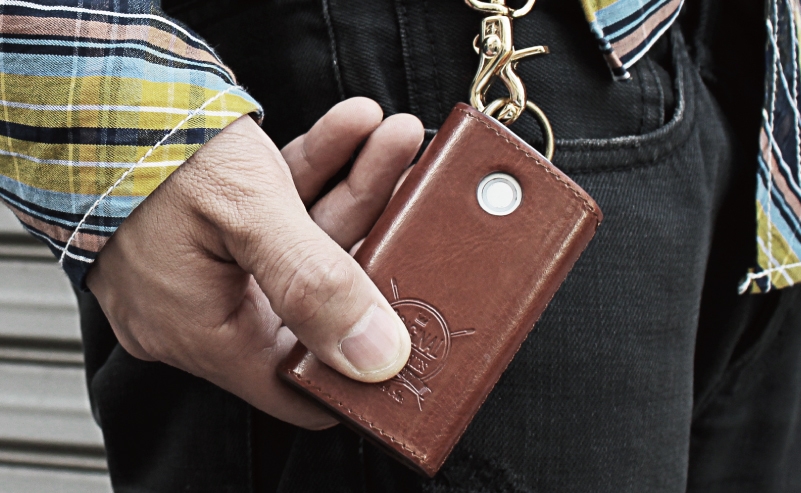 使用しない時は、リングホールにカラビナフックを通してベルトループに引っ掛けることもできます。カジュアルファッションに非常に良く馴染みます。