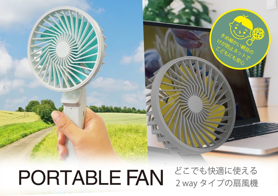 どこでも快適に使用できる2WAYタイプのポータブルファンです。