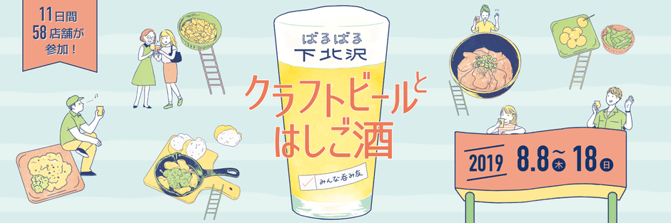 夏はクラフトビールで乾杯!お盆休みはみんなで はしご酒! 下北沢の58の飲食店が参加する 「ばるばる下北沢 クラフトビールとはしご酒 みんな呑み友」 期間:2019年8月8日(木)~8月18日(日)