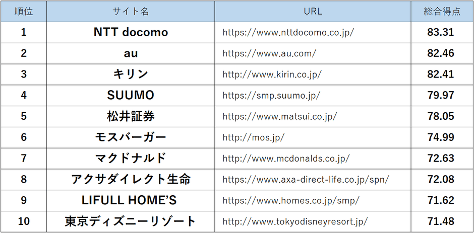 スマホサイトのユーザビリティ トップ3はNTTドコモ、au、キリン