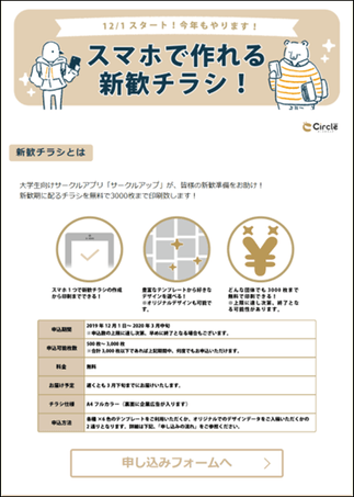 「スマホで作れる新歓チラシ!」大学生向けのサービスを開始 広告付きなら3,000枚まで無料作成・印刷が可能に
