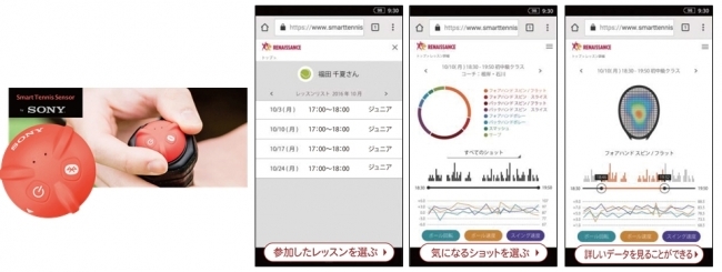 また、ソニーが開発したラケット装着型センサー「Smart Tennis Sensor(スマートテニスセンサー)※」をグリップに装着するだけで、ショットのデータを計測することができます。それらのデータとプレイバックシステムを組み合わせることで、レッスン効率を飛躍的に向上させます。