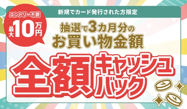2022年1月~2月に新規でAOYAMA CARD/BLUE ROSE CARD(青山ライフマスターカード)を発行された会員様の中から抽選でキャンペーン対象期間内のショッピングご利用金額を全額キャッシュバック(最大10万円)