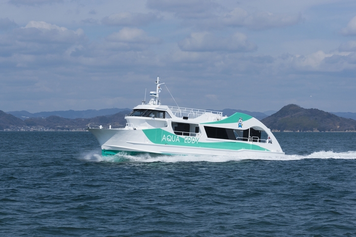 NARUTO KANKO KISEN will operate AQUA EDDY as an underwater sightseeing boat to observe Naruto Strait whirlpools located between Naruto City of Tokushima Prefecture and Minami-Awaji City of Hyogo Prefecture. Passengers can observe the whirlpools from the deck, and also up close from an observatory room that is one metre underwater, AQUA EDDY’s biggest feature. This is the third-generation AQUA EDDY, following the first-generation (October 1996) and the second-generation (February 2005) AQUA EDDY boats.