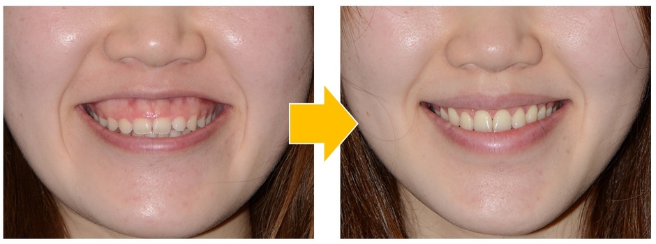 歯肉の形成外科によって露出している歯肉を除去し、歯を大きく見せる方法です。