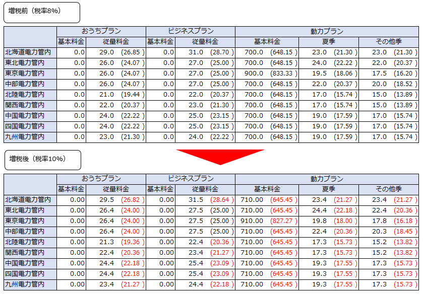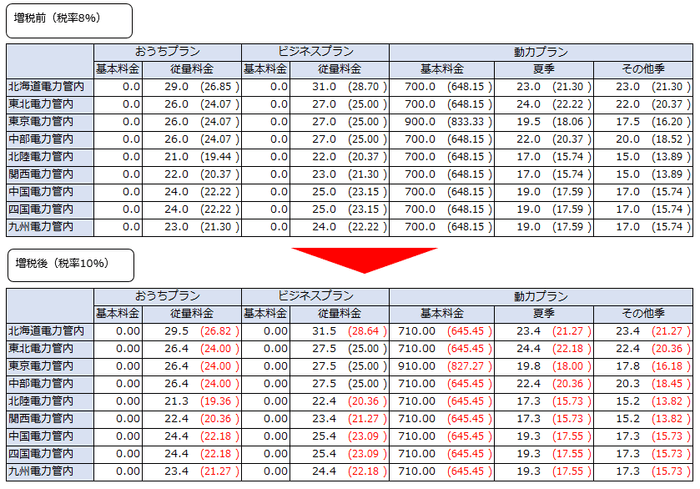 料金単価の税抜ベースでの単価を値下げし、消費税増税による値上げの影響を圧縮して対応しております。(一部エリアをのぞく)